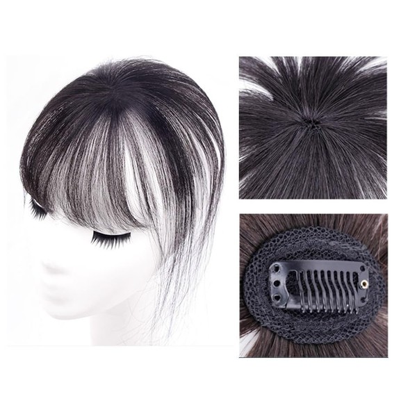 Hair Bangs with Top Piece Clip in Seamless Topper&Fringe Extension Hand Made (Black, One size)