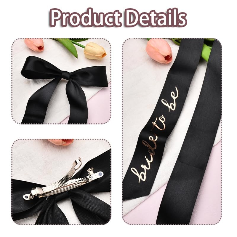 - Our bridal hair barrette is the perfect hair accessory for different occasions, engagement ceremony hair clip, bachelorette party hair barrettes, or bridal shower hairpin for bride to be, don't miss our black saint ribbon hair bow for bride to be to celebrate the meaningful day