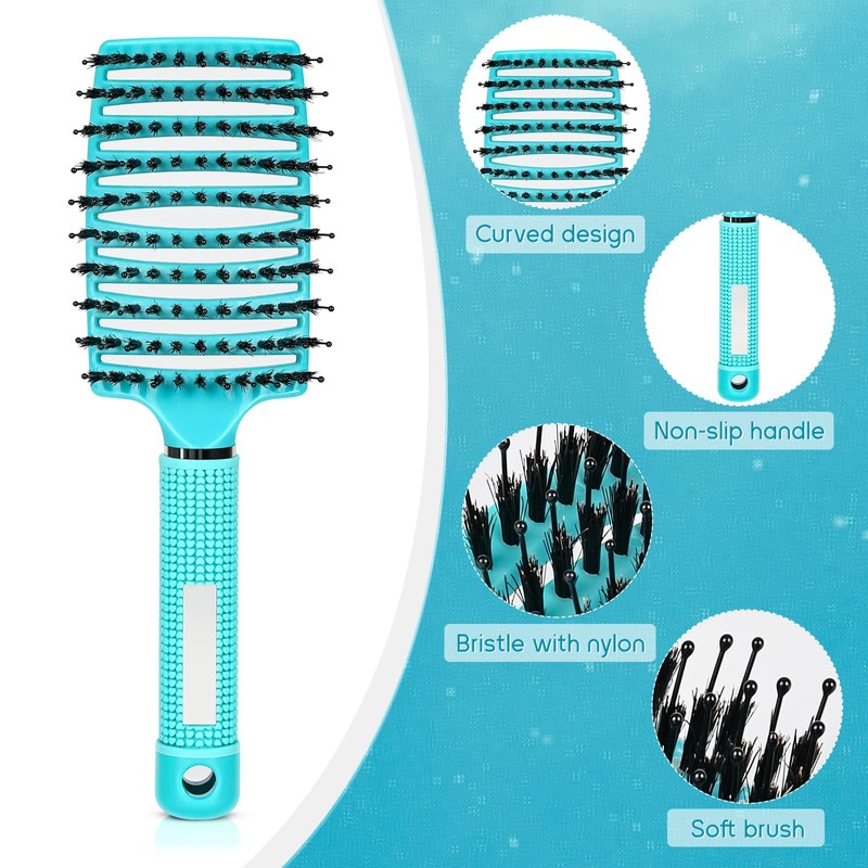 - Unique shape design: our detangling brush has a uniquely curved shape that adapts perfectly to your head shape. It is equipped with soft boar bristles that massage the scalp and promote blood circulation. The non-slip rubber design fits comfortably in the hand and does not come off easily.