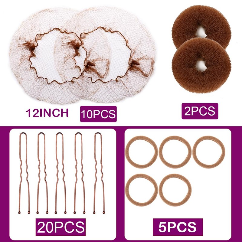 - All In One Hair Bun Solution: Our complete hair bun shaper set includes bun rings, hair nets, and hair pins for a polished look every time. Say goodbye to messy buns and hello to sleek, elegant hairstyles. Easy to use, add volume and fullness to your hairstyle and make you look elegant. Keep your hair neat and tidy