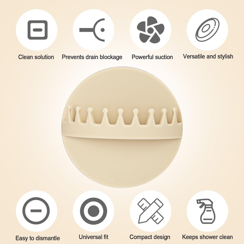 Hair Catcher Shower Wall, Silicone Hair Collector Gear Design, Bathtub Hair Trap Wall Mount, Hair Grabber Can Suction, Bathroom Hair Collecting Tool for Preventing Drain Blockage Accessories(Beige)