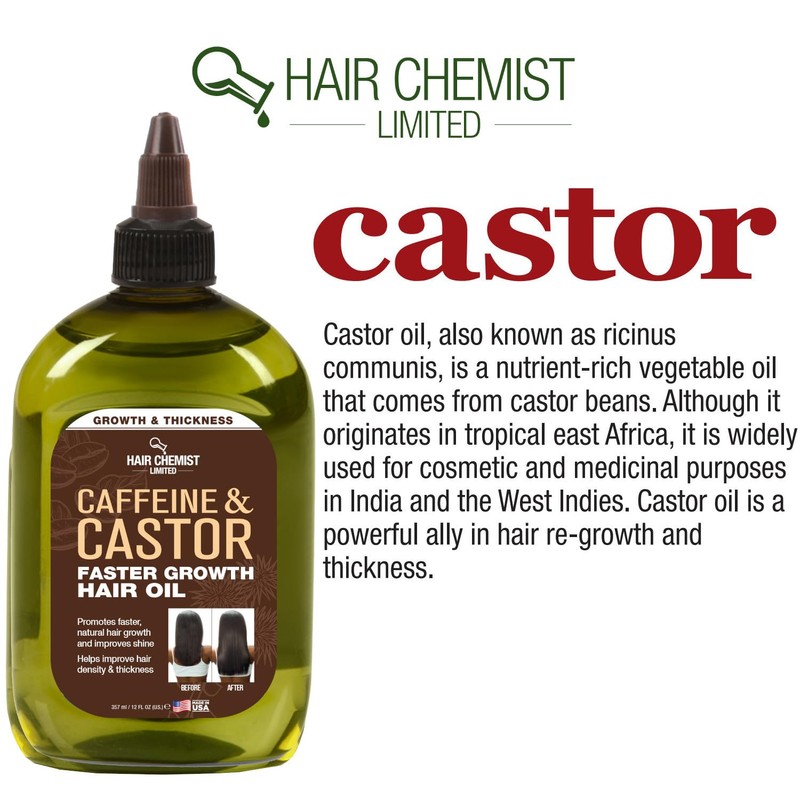 - Caffeine Oil for Hair Growth - 99% Natural Blend of Caffeine and Castor Oil that promotes faster and healthier hair growth.
