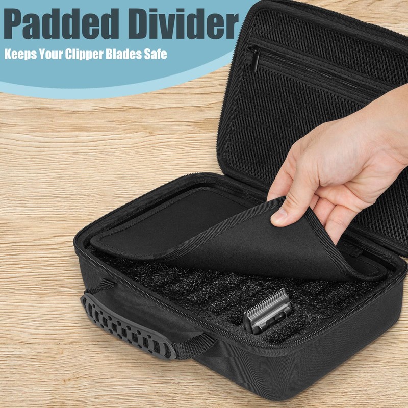 - 【Padded Divider & Zippered Mesh Pocket】Small haircut accessories can be stored in the zippered mesh pocket on the upper lid, and the middle padded divider separates your precious barber blades stationary and top.