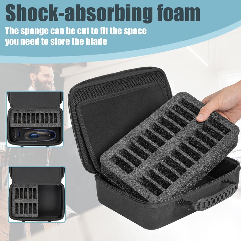 - 【Customized Internal】There are 20 pre-cut grooves inside to store barber blades neatly and orderly. Each groove is precisely designed to ensure that barber blades do not collide with each other or mess up during use and storage.