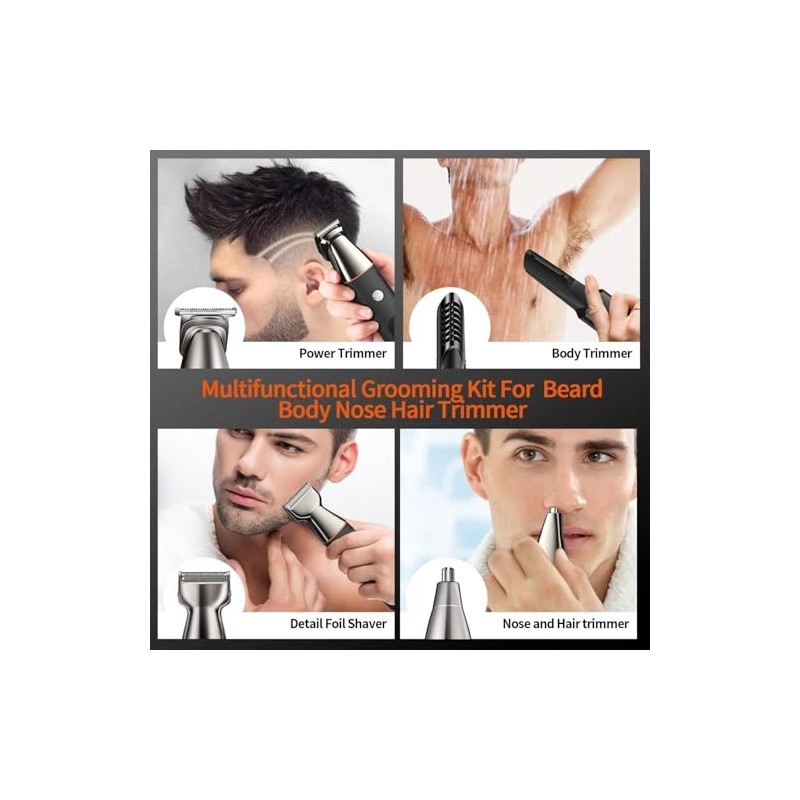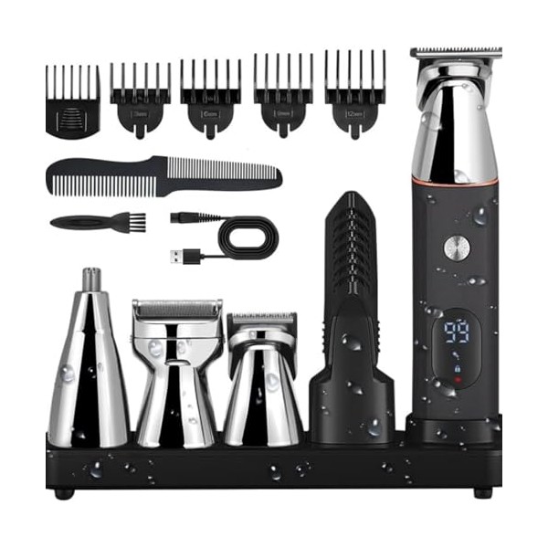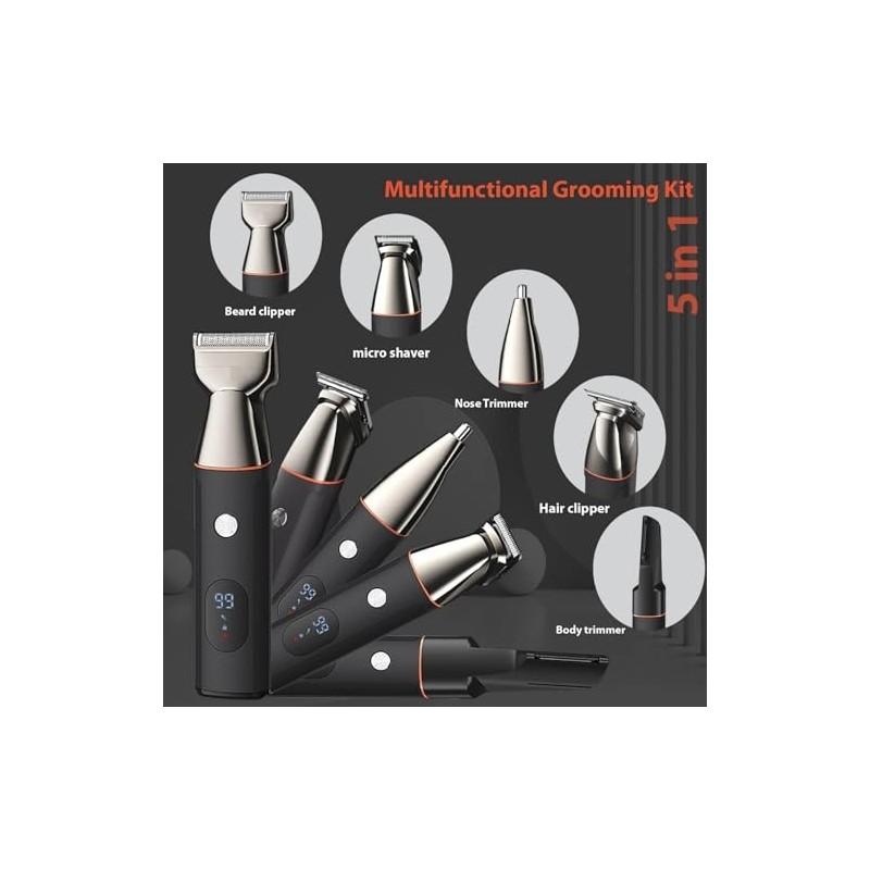 Hair Clippers for Men 5 in 1 Kit Trimmer Cordless Clipper Set Beard Trimmer for Men,Mustache Nose Hair Trimmer,Body Groomer Hair Cutting with LED Display for Men,Black