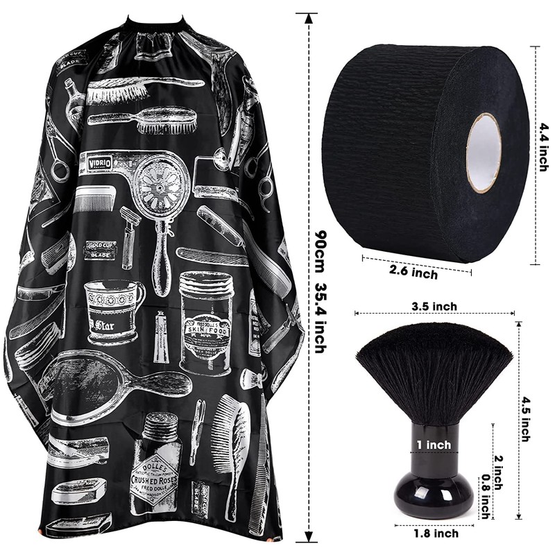 - 【Package Includes】1 x salon barber cape with Adjustable metal clip, 1 x neck duster brush, 2 x hair clips,100-Count Neck Strips .a great value professional barber supplies set for your hair cutting.