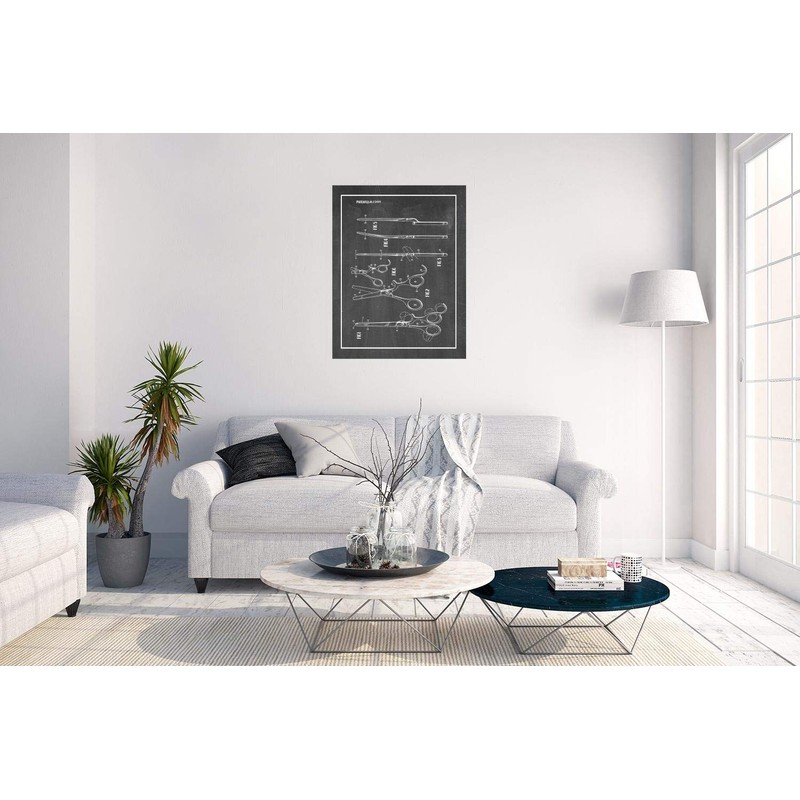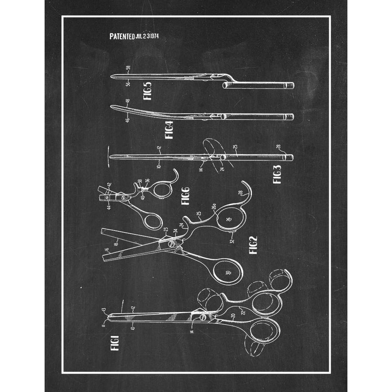 Hair Cutting Scissors Patent Print Chalkboard with Border (8.5" x 11") M13675