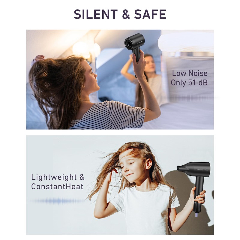 • Negative Ionic Technology: Cosy Companions Ionic hair dryer can release 500 million negative ions during the blow-drying process, which can balance the static electricity in your hair and make your hair not frizzy in the slightest, but also effectively lock in moisture, nourish your hair, make your hair soft, fluffy and stylish, and give your hair a healthy and natural shine.