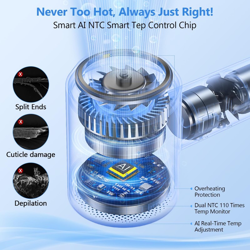Hair Dryer, HEARBOBO High-Speed Brushless Motor Negative Ionic Blow Dryer for Fast Drying, Low Noise Thermo-Control Hair-Dryer-with-Diffuser Grey