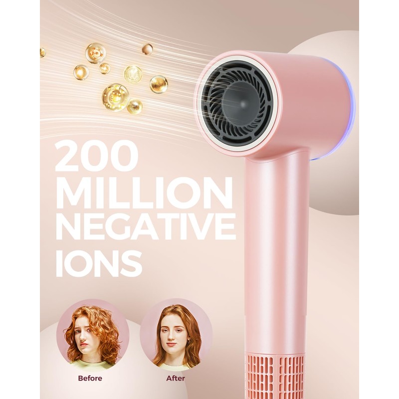 • 【Advanced Thermo Control & 200 Million Negative Ions】Our fast hair blow dryer builts in advanced thermo sensor that monitors the heat output 500 times/s to ensure the precise temperature control and even the heat distribution, reducing the risk of hair damage from high heat. Meanwhile, 200 Million Negative Ions can balance well the static electricity in the hair, ensures your hair retains moisture, resulting in smoother and shinier locks, easily to posses voluminous and silky hair