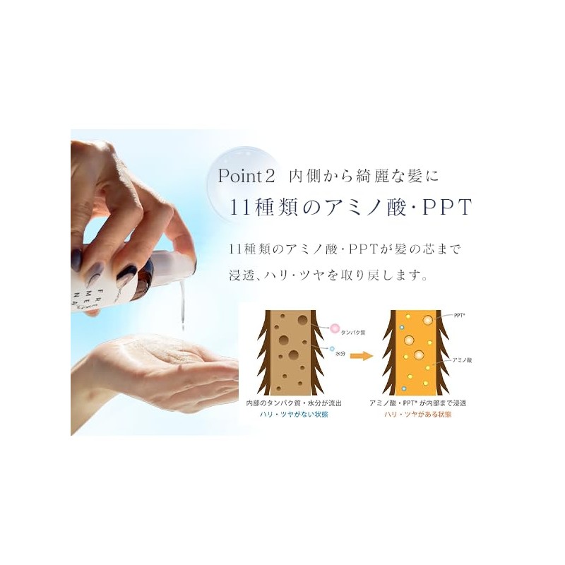 - [For moist hair: Moist type] For hair with a large amount of hair that can spread easily. In addition to water-soluble keratin, this hair oil is formulated with oil-soluble keratin and hydrolyzed conchiolin to moisturize and lead to glossy hair