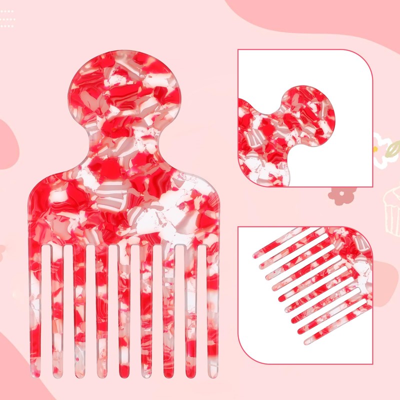 Hair Picks for Women 4.8'' Wide Tooth Comb for Curls Detangling Lifting Comb Acetate Combs Hair Styling Tool Men(Red)