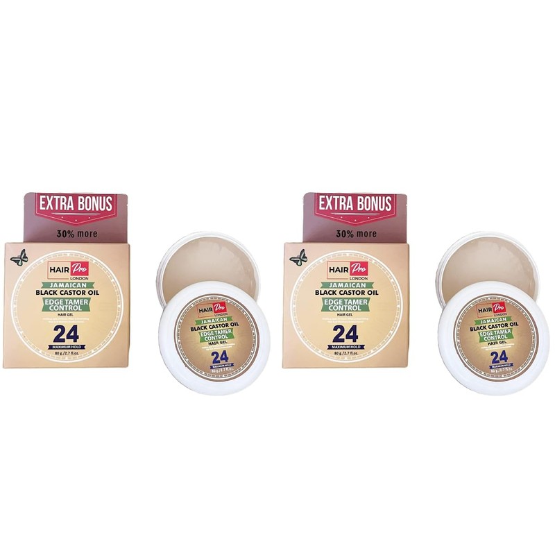HAIR PRO JAMAICAN BLACK CASTOR OIL EDGE CONTROL GEL MAXIMUM HOLD BONUS SIZE 2 x 80G