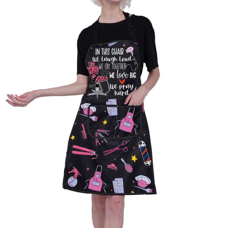 Material: This Hair Stylist Aprons With Pockets made of thickened waterproof and oil resistant materials, soft and comfortable, printed with high-quality pictures and text.