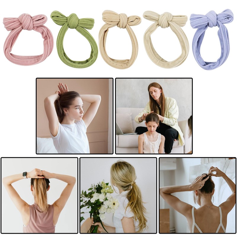 Hair Ties 5 Pieces Elastic Hair Bands Seamless Ponytail Holders for Thick Hair Bow Knotted Hair Bobbles Hair Accessories for Women, Girls