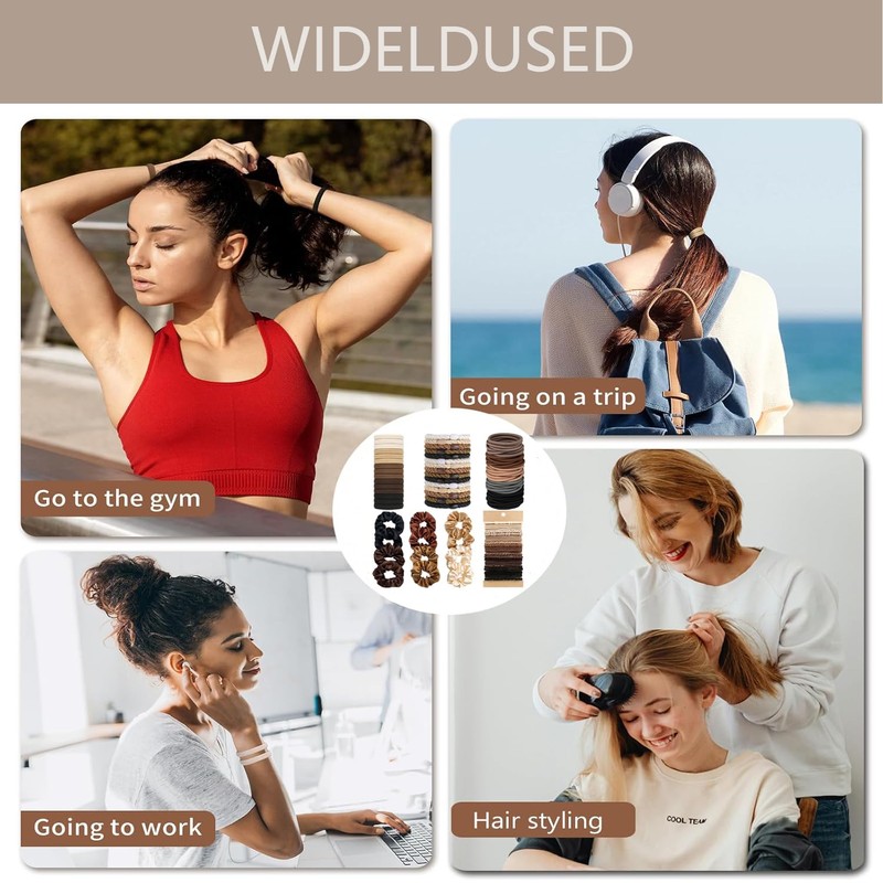- 【Stretchy Hair Bands】:The non-metal hair tie is made of soft woven material.made of high elastic material, keeps the hairstyle firm and comfortable,The hair ties can be stretched easily and resume quickly, which can hold your hair tightly while working, sporting or playing.