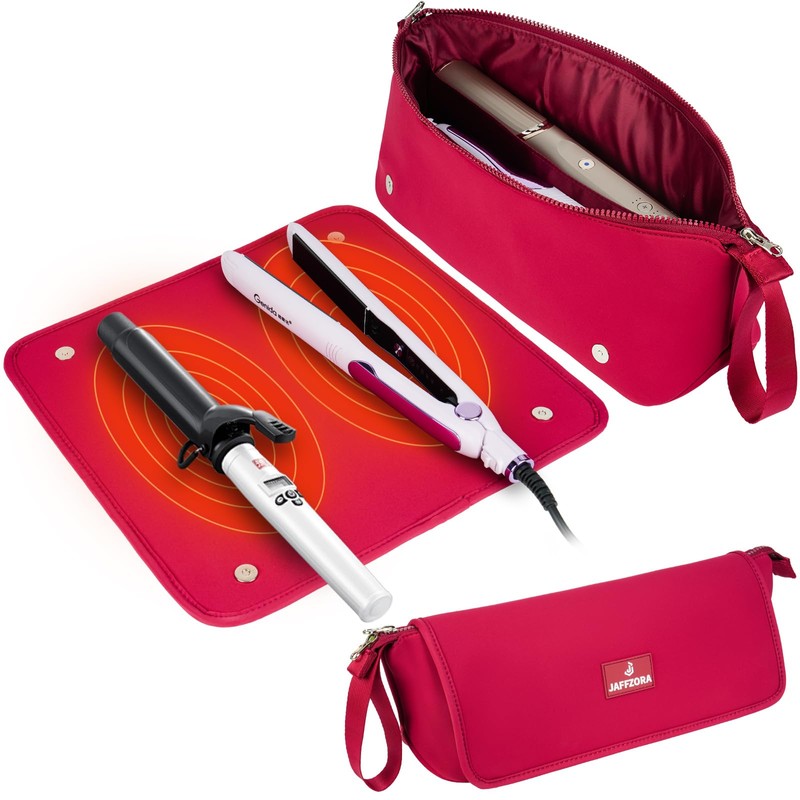 Hair Tools Travel Bag with Heat Resistant Mat and Lining, Portable 2 in 1 Hair Storage Bag for Curling Iron, Flat Irons, Straighteners and Haircare Accessories(Red)