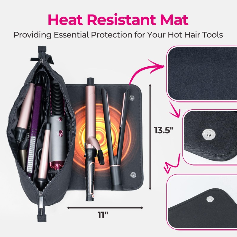- Heat Resistant Mat: The pad of hair tool holder allows you to safely store hot styling tools immediately after use without waiting for cool-down. The thick, insulated padding protects your counters, vanity, and hotel surfaces from heat damage while saving you precious time during your beauty routine.