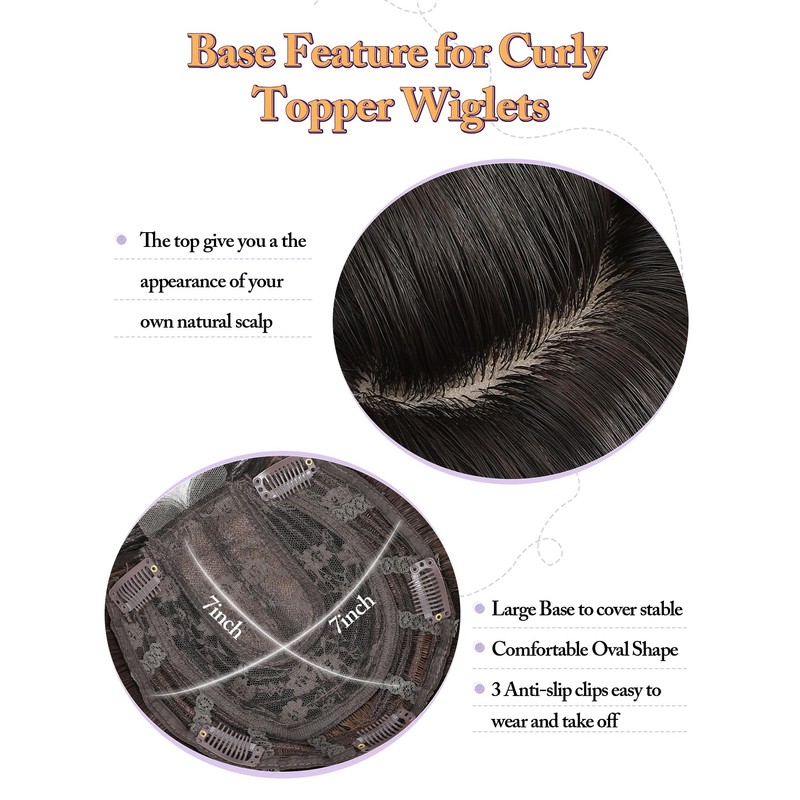 - 【Easy to Wear】There are 3anti-slip clips around to make it stable and firm to wear. Harmless to your scalp and adds volume to your top hair immediately. 3 non-slip clips will securely and comfortably hold on your head. Don't worry about loosening or slipping.The topper is easy to use, taking under 3 minutes to style. It is perfect for concealing thinning hair at the crown.It doesn't cause any discomfort or sweating, even after 12 hours of wear.