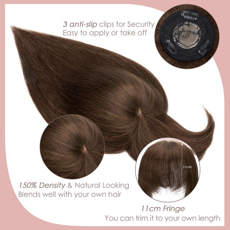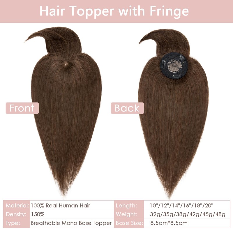 150% Hair Density Hair Toppers for Women MONO BASE Fringe Style