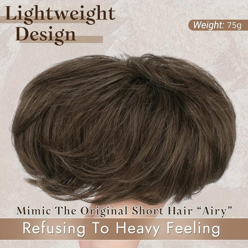 Hair Toppers for Women Short Hair Topper with Bangs Pixie Thining Hair Fluffy Pixie Hair for Women with Bangs Synthetic Hair Pieces for Thinning Hair Side Part Hair Toppers Rose Net 5x6 Inch for Women Daily Use Loose Wave Wig Artificial Wig:_1B/2#