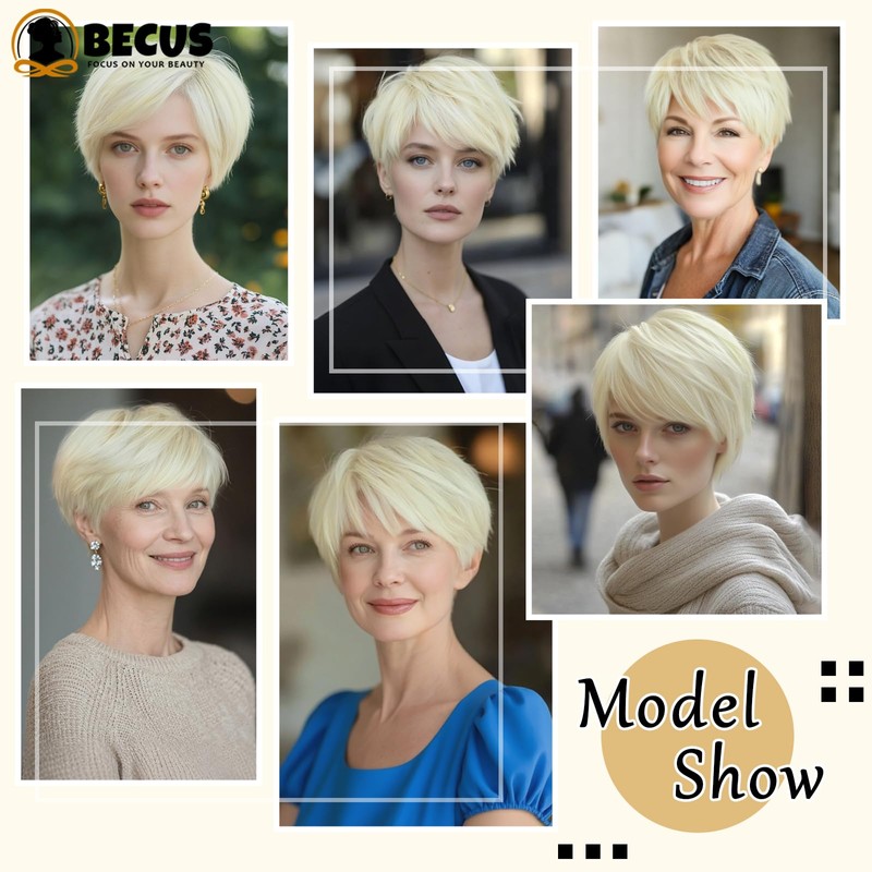 Hair Toppers For Women With Thinning Large Coverage 6" x 6.5" Pixie Cut Short Hair Topper Fluffy Synthetic Hair Pieces Clip In Bangs (Blonde Mixed White)