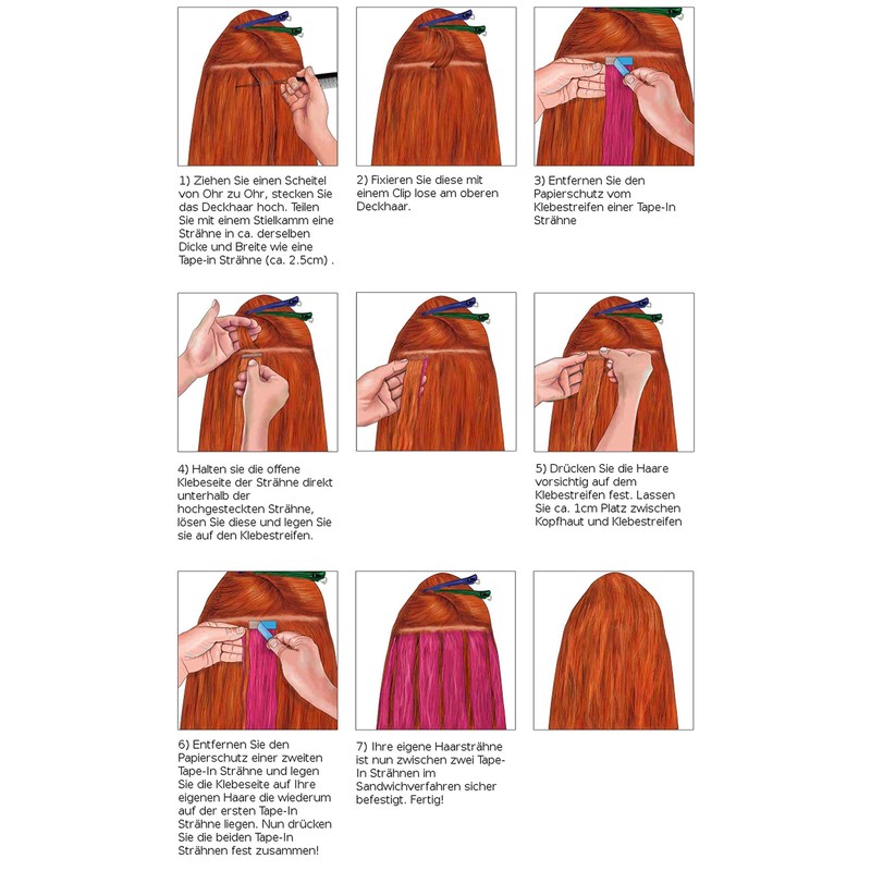 - The human hair tapes for gluing resemble the European hair structure, so the hair extension sits discreetly and securely in your own hair