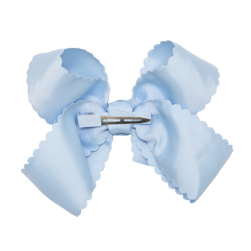 HAIRBOWS Girls' Grosgrain Scalloped Edge Bow with a Knot Wrap Center on a Clip, All Ages and Hair Types, 6 Inch Bow, Blue