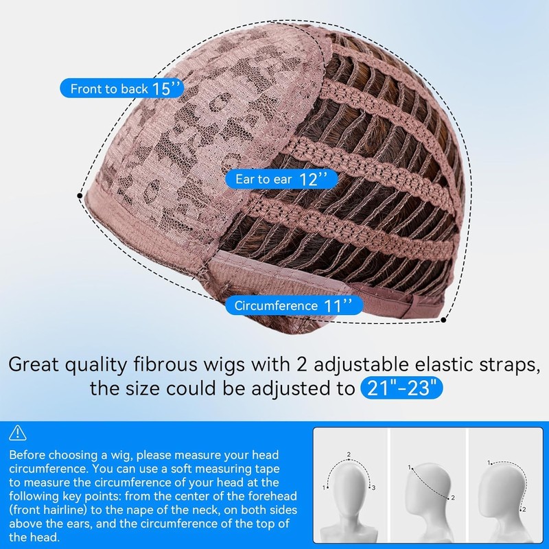 - 【Adjustable breathable wig cap】: the average size of this wig (21 "-23"), There are two elastic bands in the hat. You can strap it according to your head Easy installation and easy disassembly save you more time
