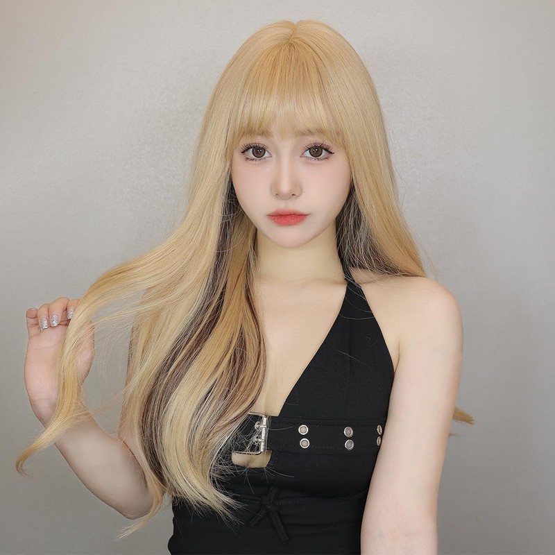 Haircube Wig, Semi-Long, Curly Hair, Bangs, Inner Color, Women's, Full Wig, Perm, Small Face Effect, Fashion, Medium, Cute, Costume, Heat Resistant, With Net (Light Gold, Inner