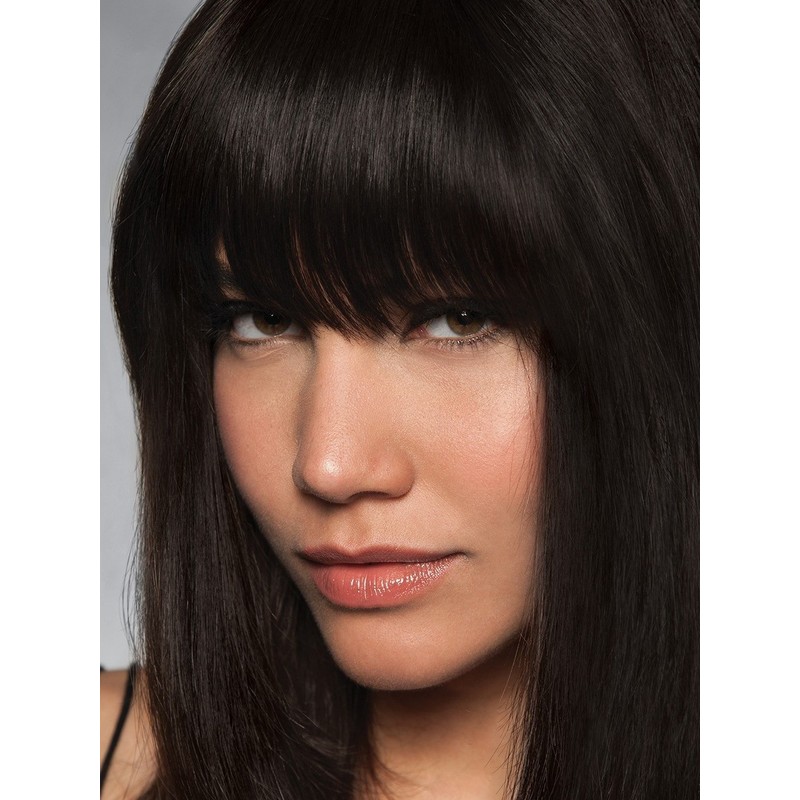 - Fringe and fashion are front and center in this 100% human hair bang. Our popular clip-in bang is now offered in high quality human hair so you can achieve any look you want. The monofilament crown connects the fringe and longer layers to sweep back to blend right into your hair. Attaches with 3 pressure-sensitive clips. Change your look in a flash with this lash-skimming fringe!