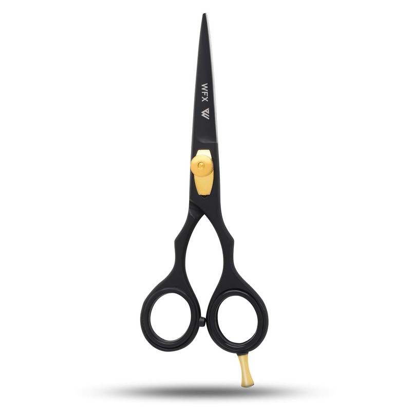 - BEAUTY WITH HAIR CARE The 5.5 inch deep black hairdressing scissors gives you a lot of confidence when cutting hair smoothly and efficiently. Good movement with the small finger rest on the handle, comes in a convenient travel case, use your scissors on long or short hair, dry or wet hair, thin or thick hair.
