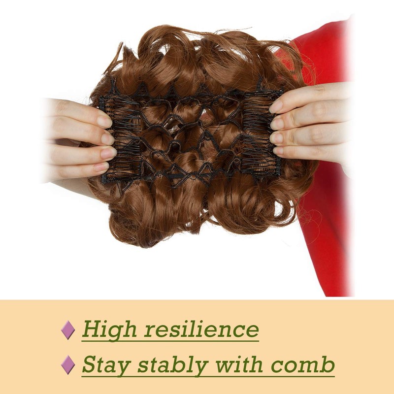 - 【Care Tips】: Synthetic hair may easily tangled, and this is a messy hair bun, please don't comb the hair bun, style the hair bun with your finger before put on. Wash the synthetic hair extensions in warm water with mild shampoo and conditioner, and squeeze the water with a towel, and dry naturally, please do not use hair dryer.