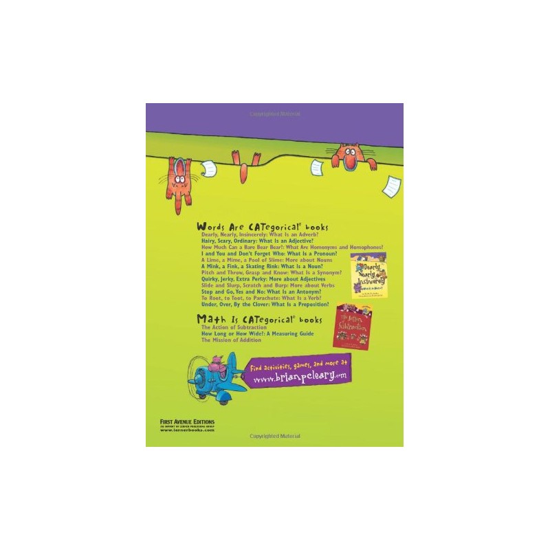 Simple, rhyming text and colorful cartoon cats help children expand their vocabularies and gain an appreciation for the rhythm of language in this lighthearted book of rhyming verse. Adjectives like frilly, silly, polka-dotted, fizzy, and spunky are printed in color, and all the words will tickle you pink!
