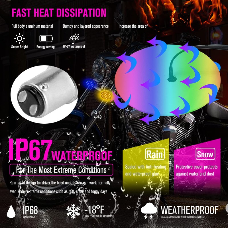 - Super Bright 1157 Motorcycle LED Light:37pcs high power double colors 3528 SMD chips/bulb;Amber light for turn signal light,White light for daytime running light/driving light;It's 200% brighter than halogen bulb,low power and energy saving.