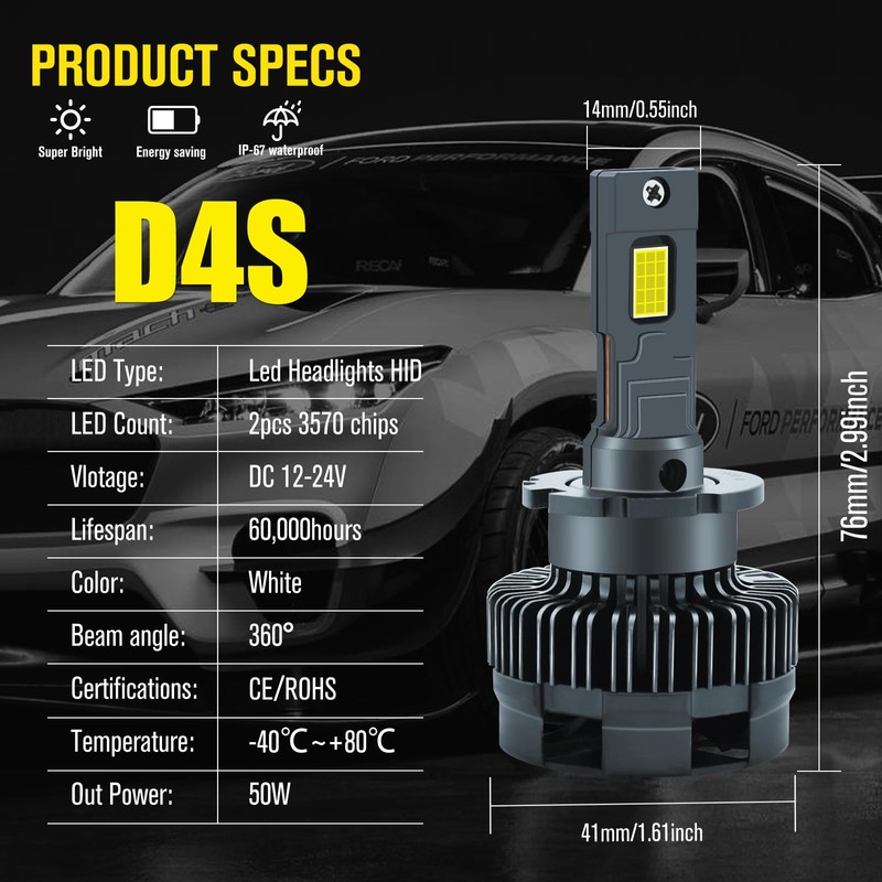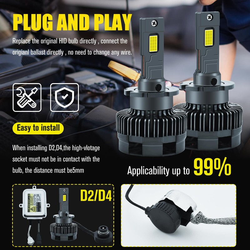 • 👍Package & Warranty:2pcs D4S LED headlight bulbs,we offer 1 year warranty,PLS contact us if any question.