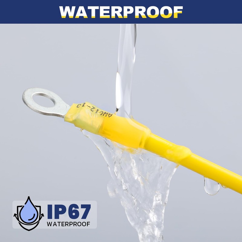 - Aplicación flexible: los 100 terminales de anillo termorretráctil funcionan para calibre de alambre AWG 12-10 1/4 pulgadas. Para motocicletas, automóviles, tractores, barcos, etc.