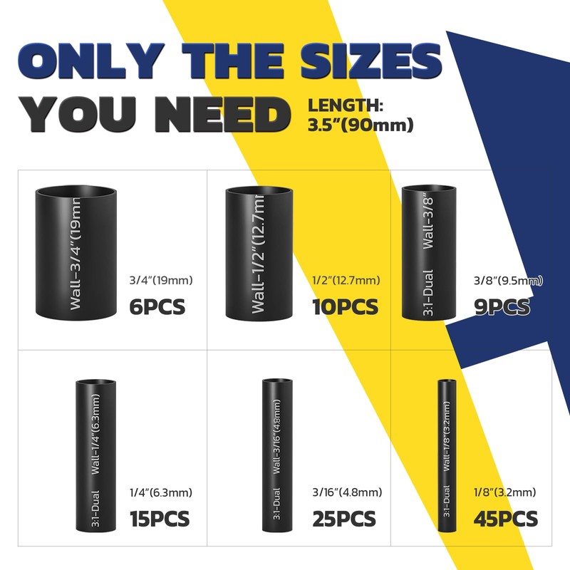 - Don't Compromise On Quality: We prioritize durability in our heat shrink tube.Constructed with top-quality heat shrink materials, it exhibits exceptional resistance against chemicals, abrasion, and UV rays.Rest assured, our tubing is built to withstand the most demanding conditions,ensuring longevity and maintaining optimal performance over time.
