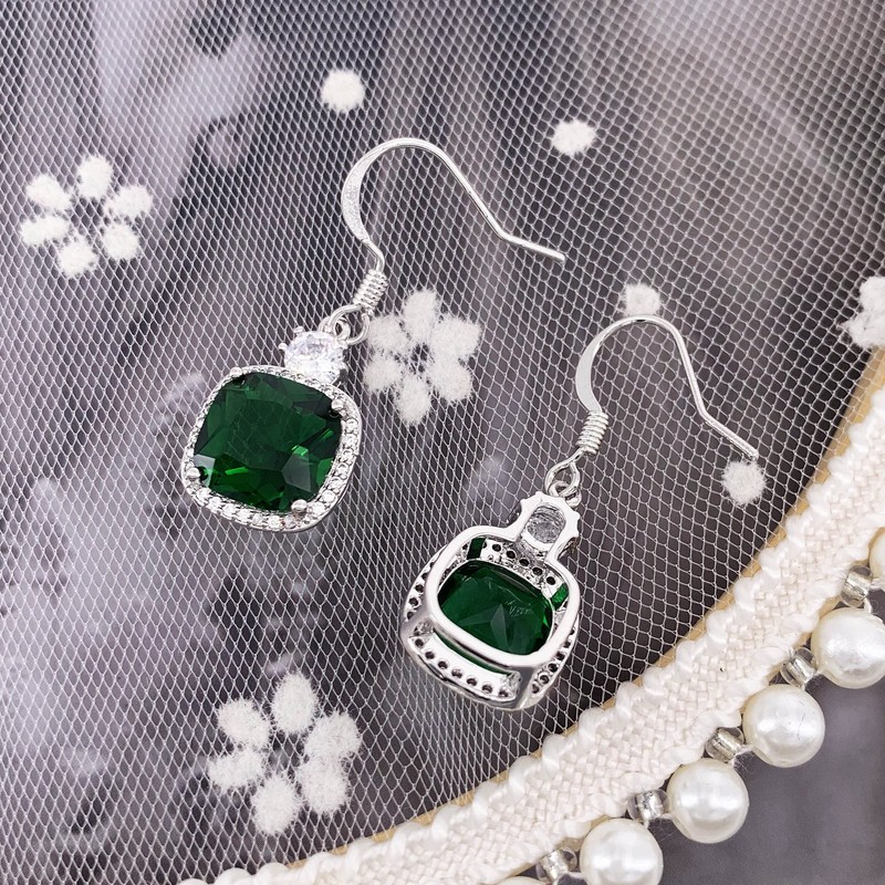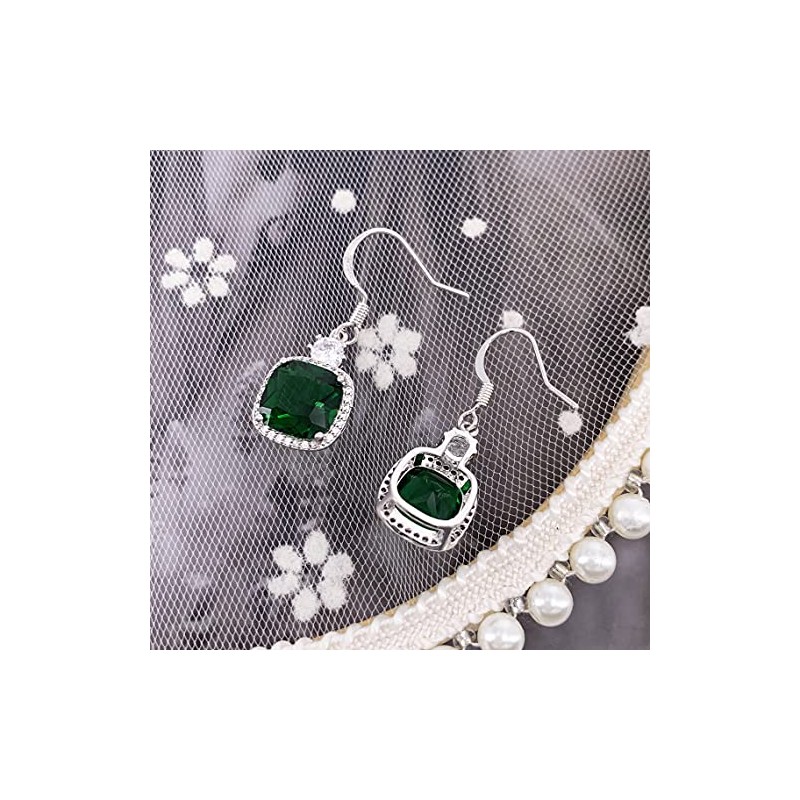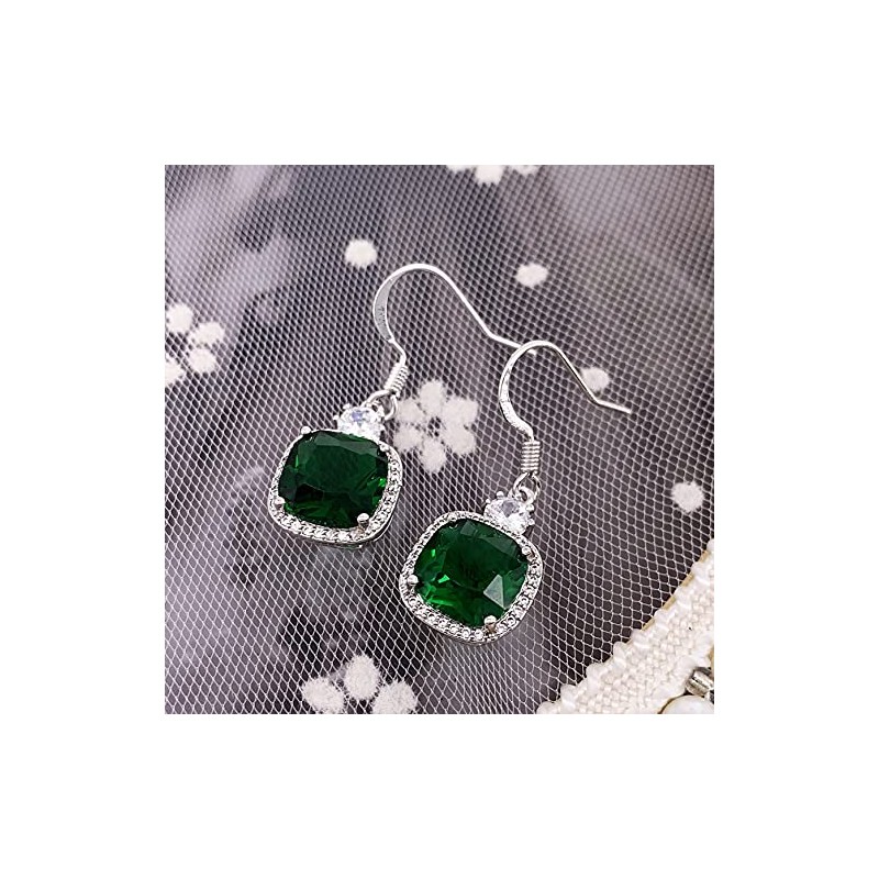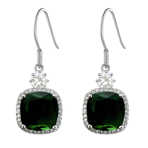 HAISWET Crystal Green Cubic Zirconia Fish Hook Dangle Earrings Silver Tone, Cubic Zirconia, Crystal