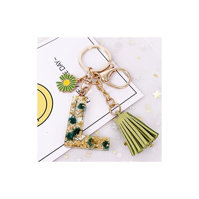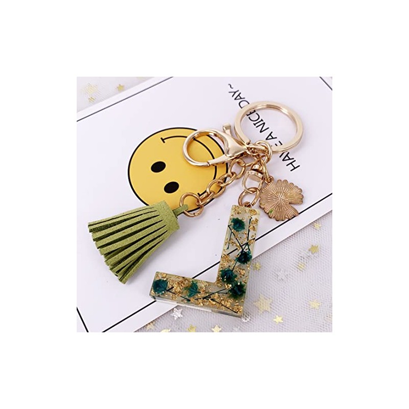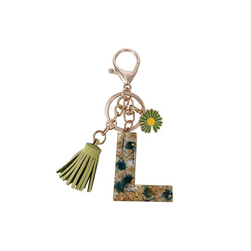 HAISWET Keychain Alphabet Green Leaf Keyring Bag Charm Tassel Purse Accessory (L)