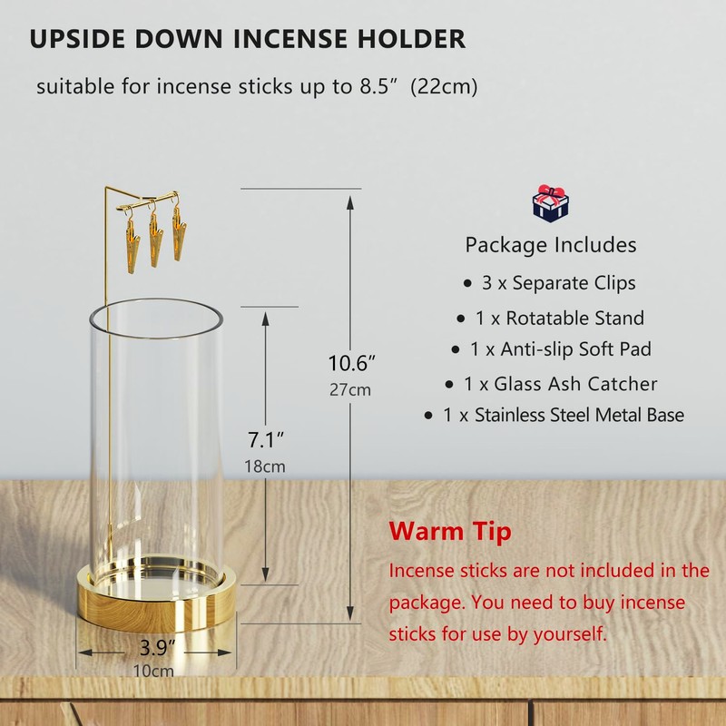 - [ Perfect Gift for your Family & Friends ] - Package includes: 1 x removable ash catcher glass, 1 x base (non-slip pad included), 1 x stand, 3 x detachable clips. The combination design of HaisWonsa porta incienso allows you to create your own peaceful atmosphere even more. Perfect vertical incense holder for zen meditation room decor, spiritual home decor, relaxation decor and yoga decor. Cool incense holder upside down, inverted incense burner, reverse incense holder for modern home decor.