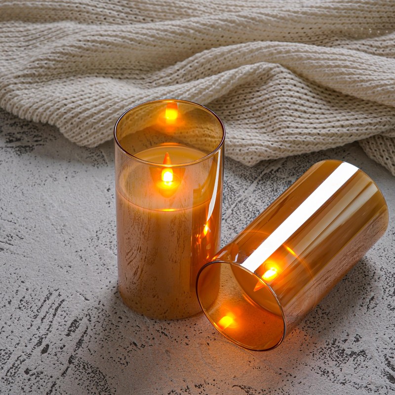 - Rechargeable flameless candles to create a warm atmosphere:Includes 2 Golden Plexiglass LED Pillar Candles(6in),Candles that emit a soft and shimmering glow to create an authentic candlelight effect that adds warmth to holiday decorations, family gatherings or romantic dinners.