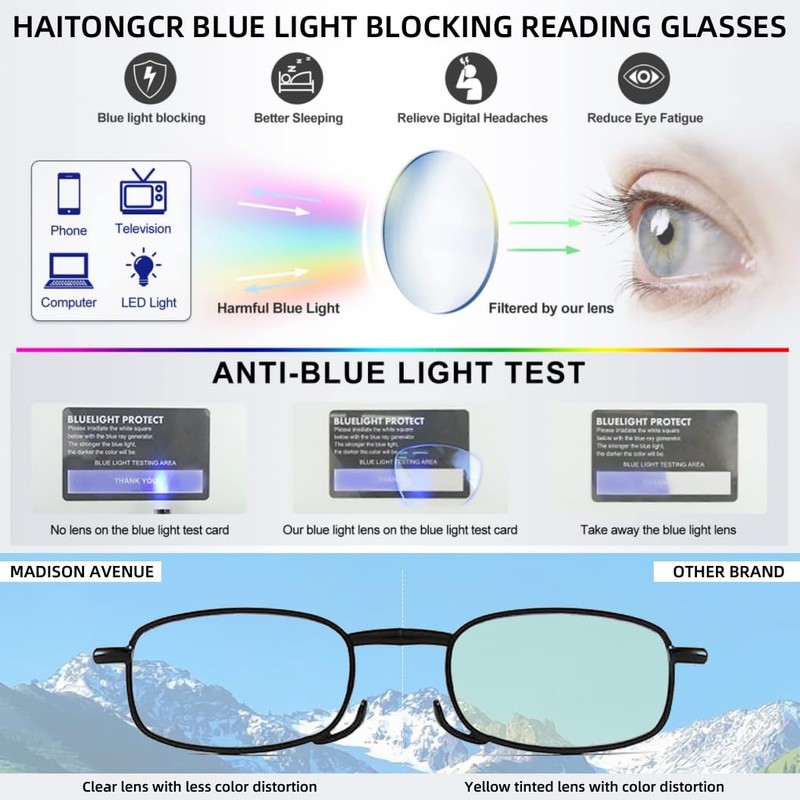 - Compact and Foldable Design: Our glasses feature a unique foldable mechanism that allows them to collapse into a compact size, fitting easily into any pocket or bag. Perfect for travelers, commuters, or anyone who needs to carry their reading glasses with them wherever they go.