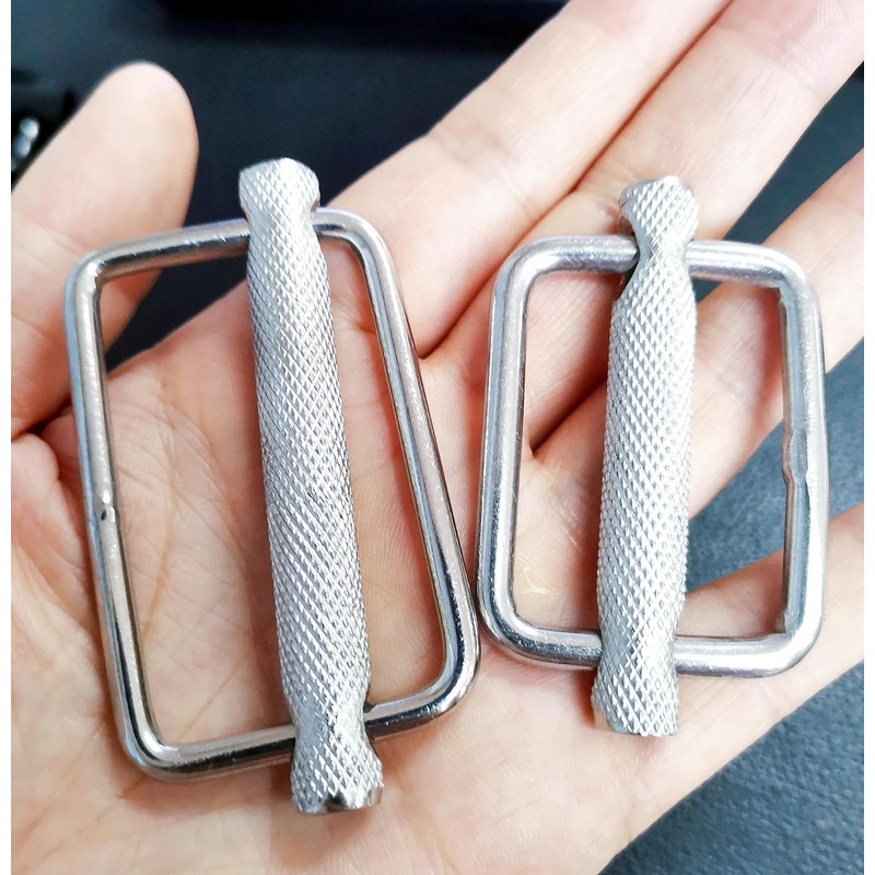HAIWEN 2Pack Stainless Steel 316 Slider adjustable Lock Buckles, Replacement for Belt backpack strap adjuster replacement, Sliver, Medium
