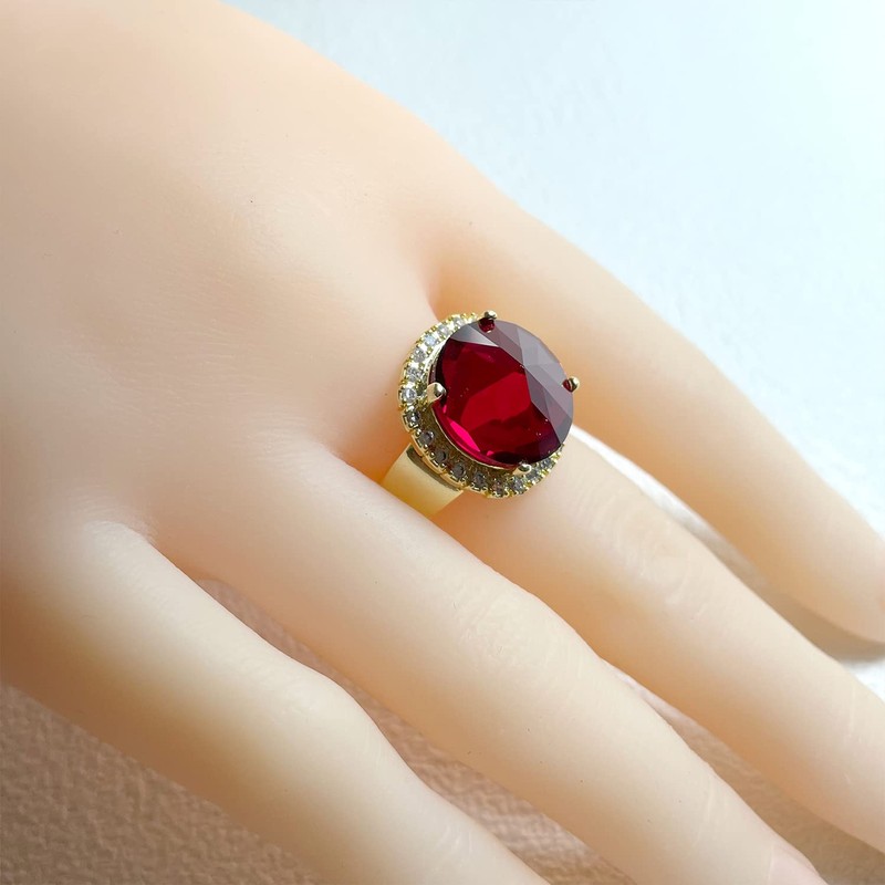 HAIXIAN Round Multi-Cut Red Ruby Stone Wide Band Ring,14K Yellow Gold Pyramid Shaped Healing Crystal Stone Ring,Wedding Engagement Gemstone Ring Jewelry for Women Her (Ring_A, 9)