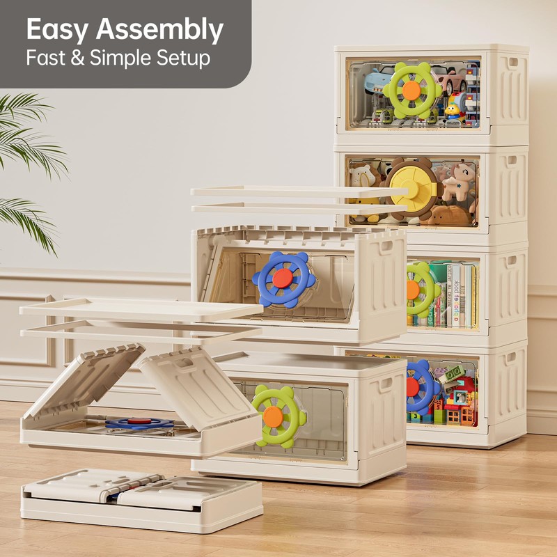 - Design-with-care Toy Organizer: Made of premium PP material, the toy organizer and storage bin is odorless and durable. Every storage box is sturdy enough to bear weight up to 110 lbs. Each collapsible storage bin comes with 4 built-in rollers at the bottom, making it easy to move from side to side on non-carpeted floors.