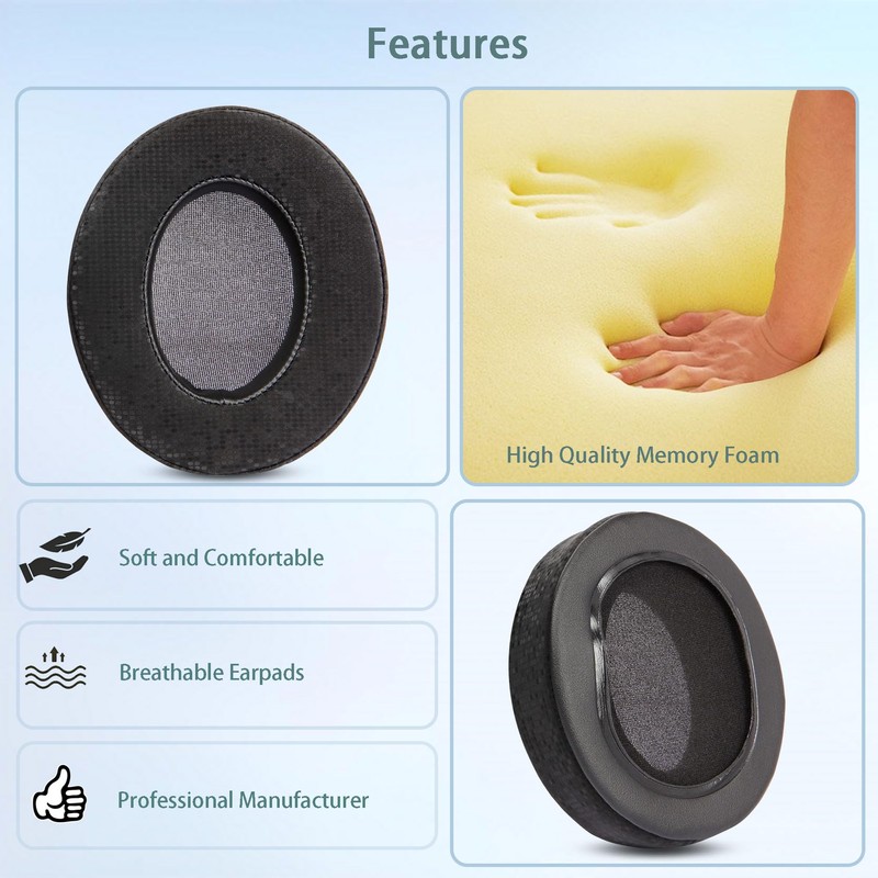 - 【Material】:Professional replacement Ear pads cushion made of softer protein leather and professional memory foam