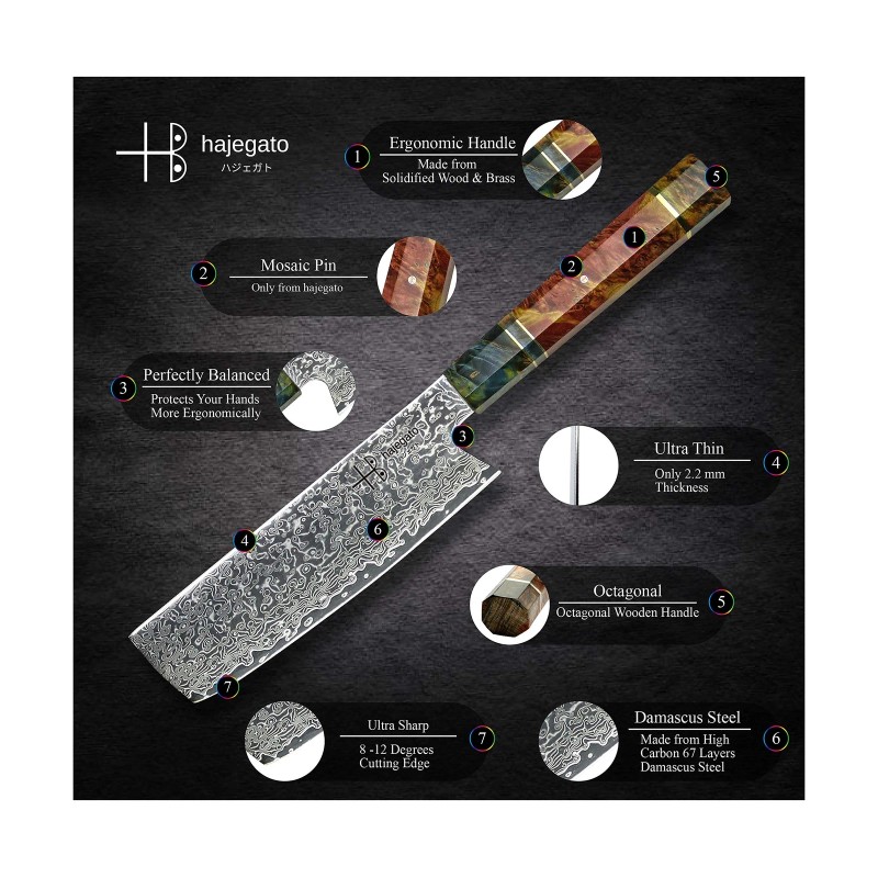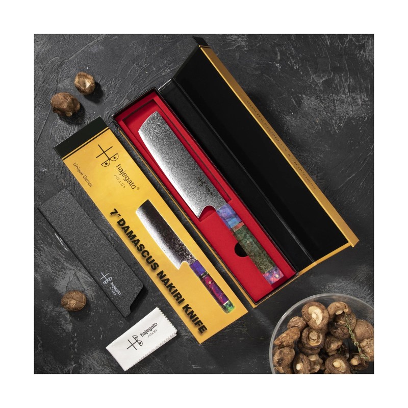 hajegato Damascus Chef Knife Unique One of Kind Handle Professional Japanese Chefs Kitchen Knife Vg10 67 Layers Damascus Steel Knive (Nakiri 7")