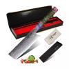 - UNIQUE & BEAUTIFUL : Do you want to stand out in any professionals Kitchen or Impress your guests at home while cooking you made the right choice. Our Unique chef's Nakiri one of a kind handle Damascus knife comes with different colour combinations and designs complemented by Damascus stainless steel curling pattern blades without which no chefs knife set will be complete. EACH KITCHEN KNIVES is AS UNIQUE & COOL AS YOU ARE.