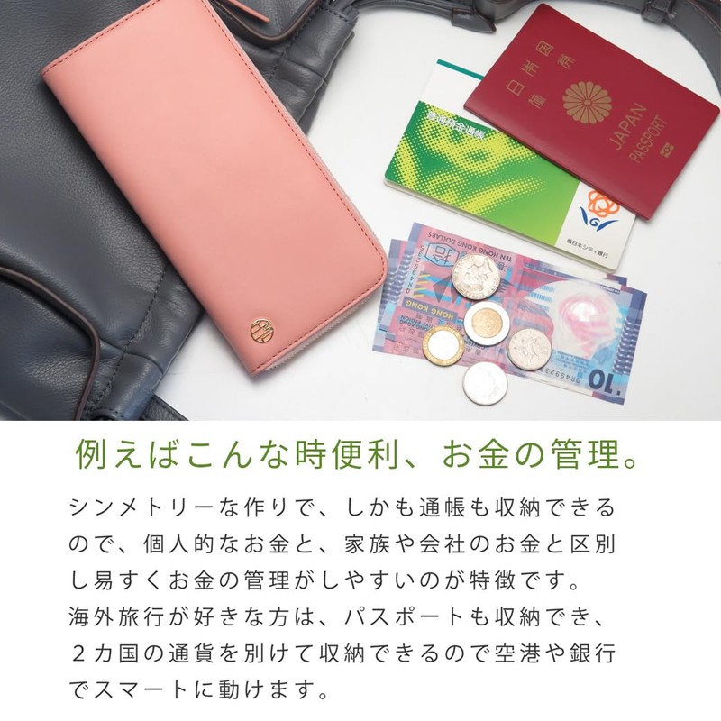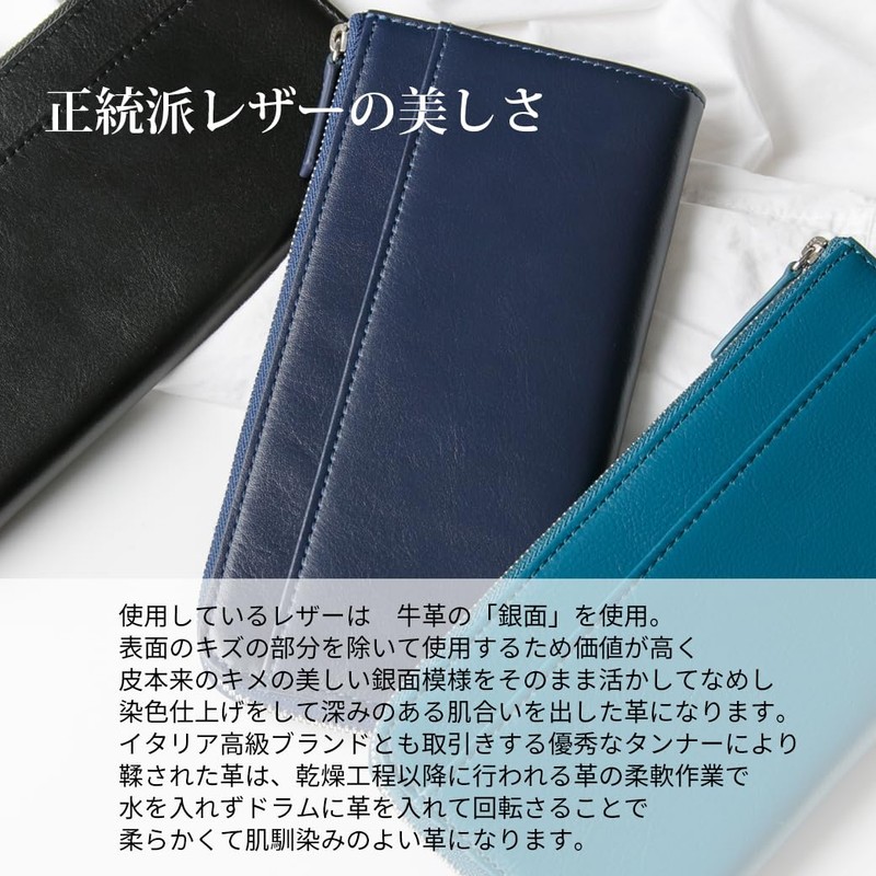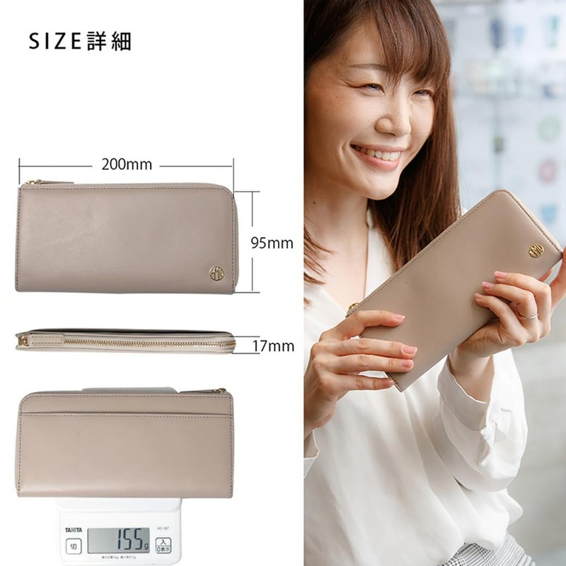 HAKATA NO MORI LEATHER Women's Long Wallet, L-Shaped Zipper, Genuine Leather, Brand, Thin, Gusset, Coin Purse, Card Slots, 12 Cards, Thin, Slim, Lightweight, Easy to Use, Bi-Fold, L-Shaped Fuser, YKK